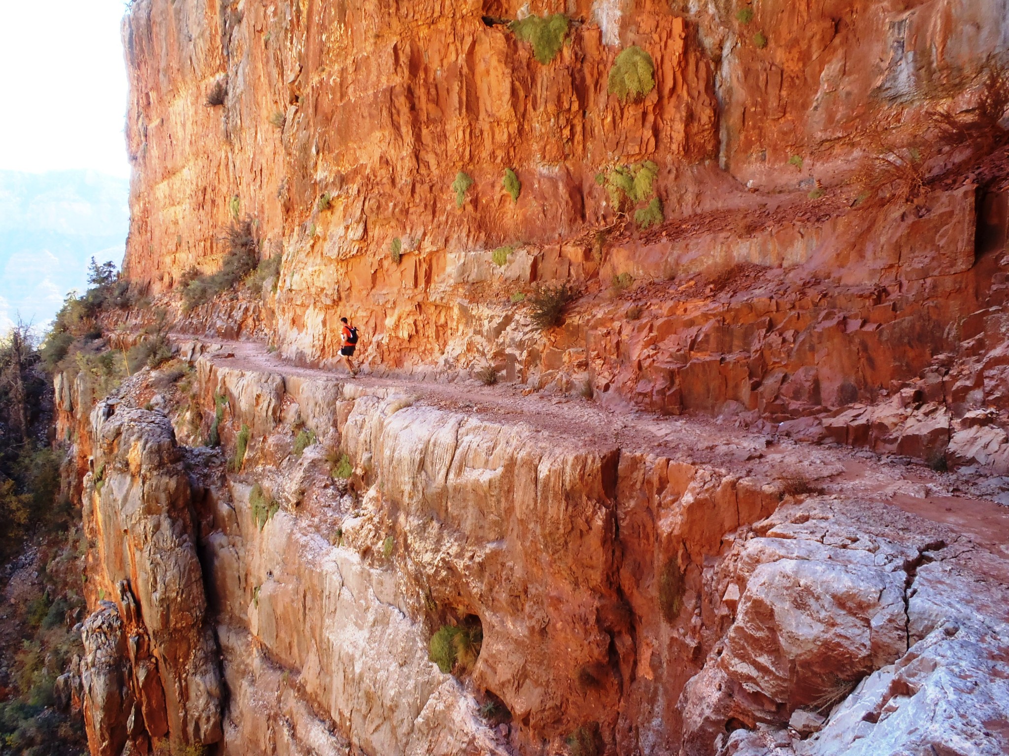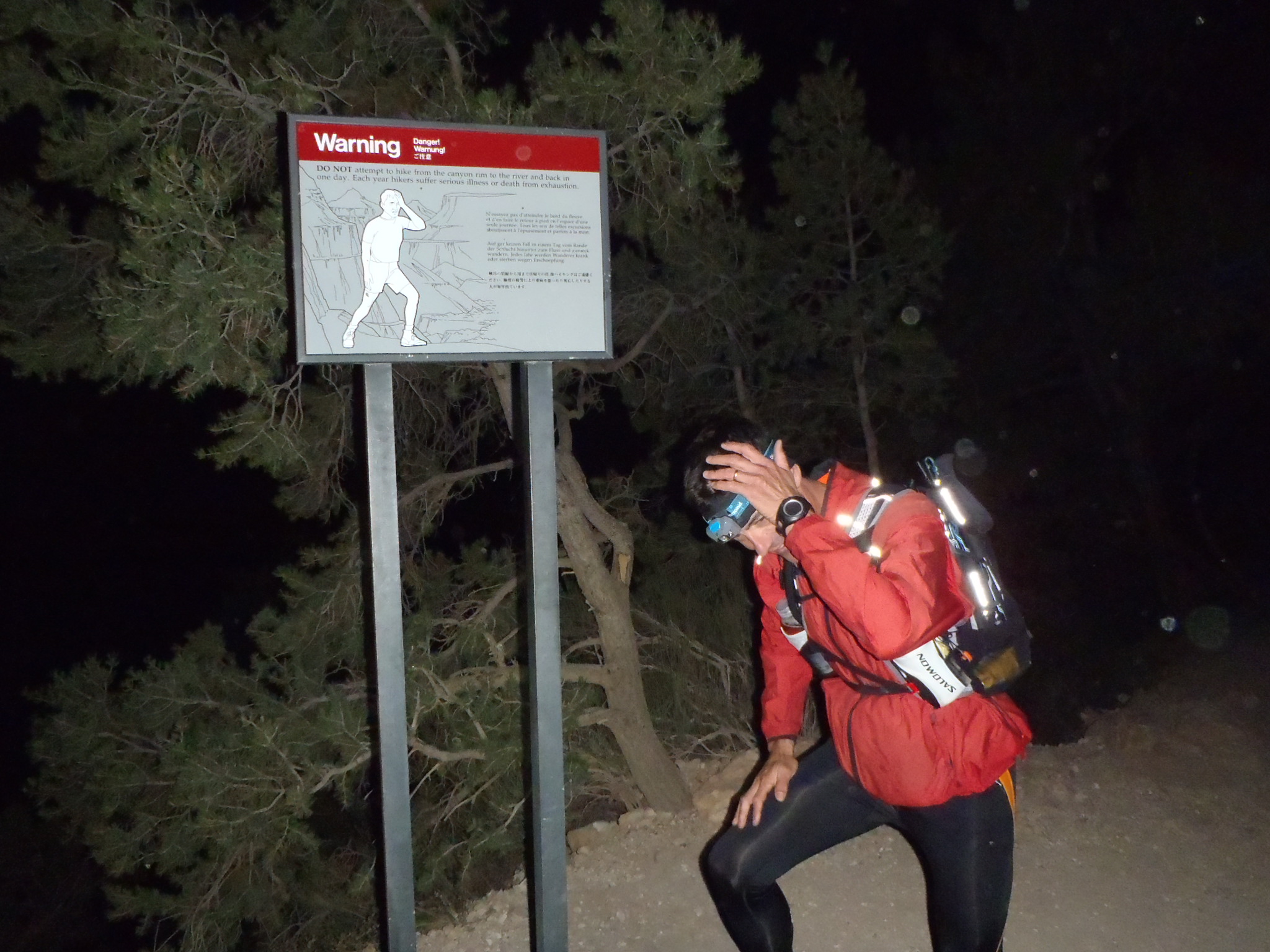 There is normally water available at the North Rim trailhead – when I came out in March we were able to fill up there, so I was counting on it, especially with the heat. I was also planning to have lunch on the North Rim. Imagine my surprise when I got up there and the water was off… it made for a very tough, depressing section as I was completely out and I thought I would have to run about 5 miles before I was able to get more water. I skipped on lunch and started right back down. The fear of death by dehydration is not fun… however, I found a water spot less than 2 miles from the top.