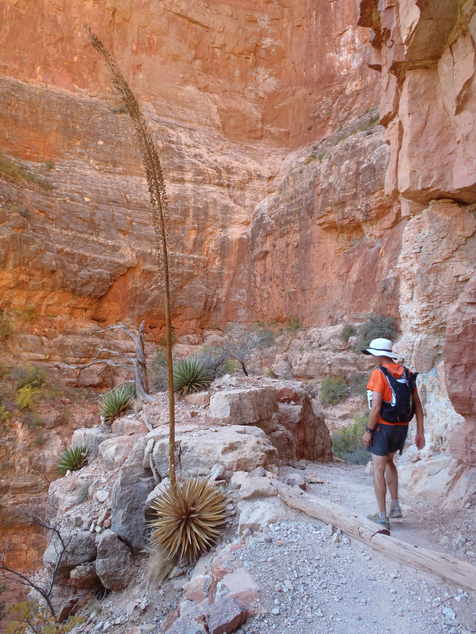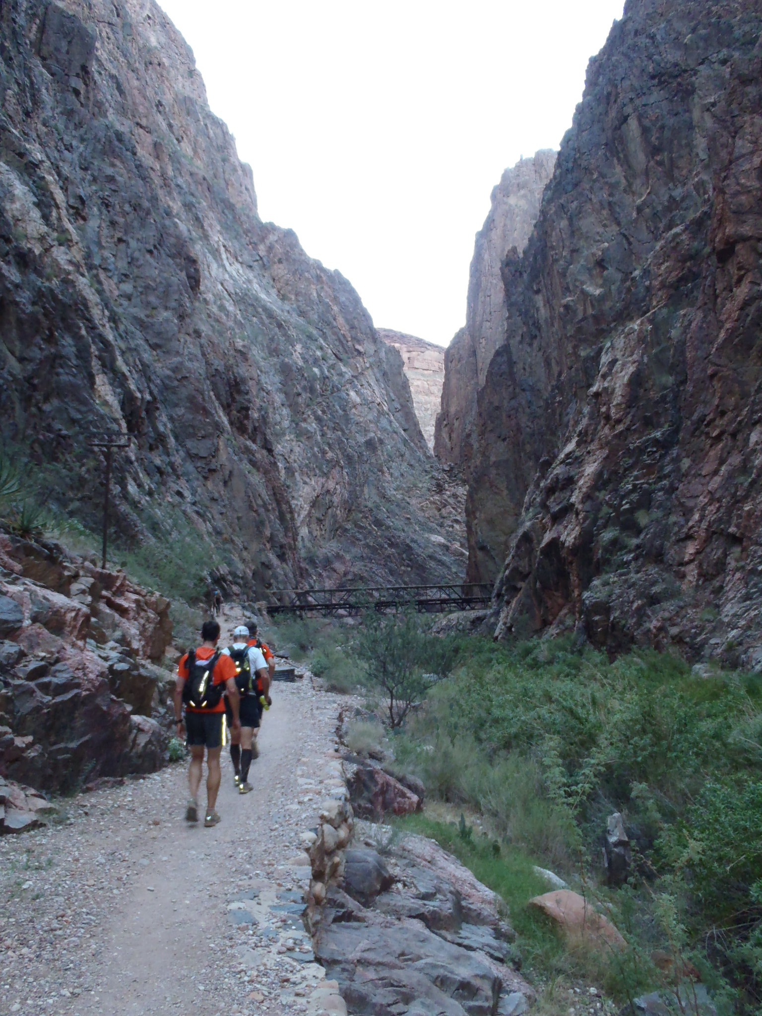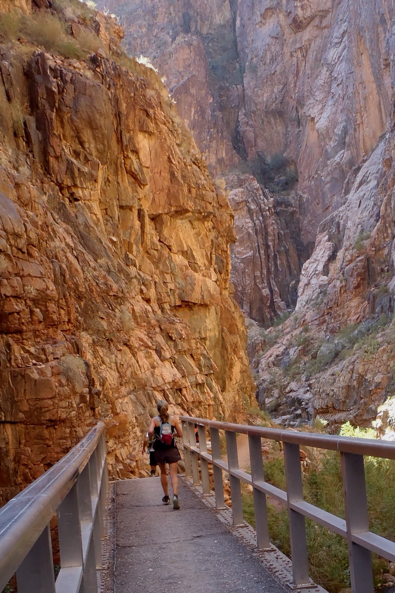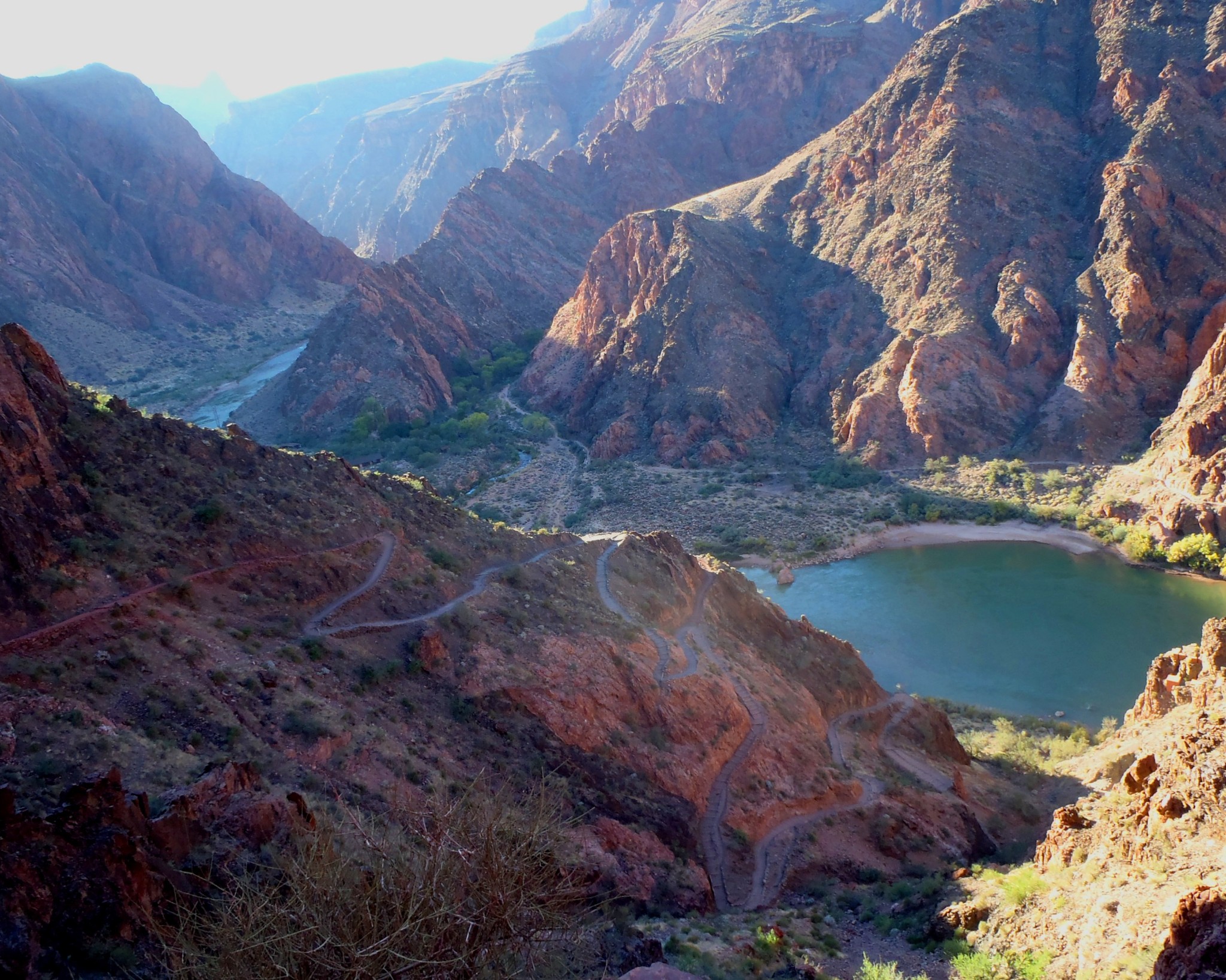 After descending the South Kaibab Trail, we crossed the Colorado River (at sunrise) and continued along the canyon bottom towards the North Kaibab Trail.