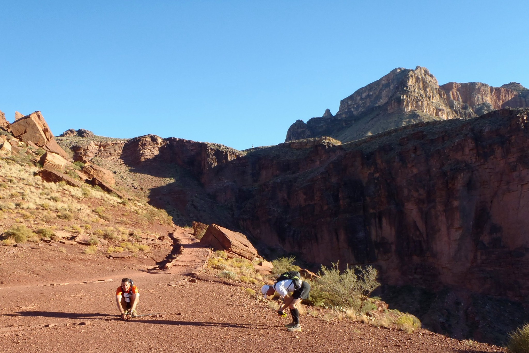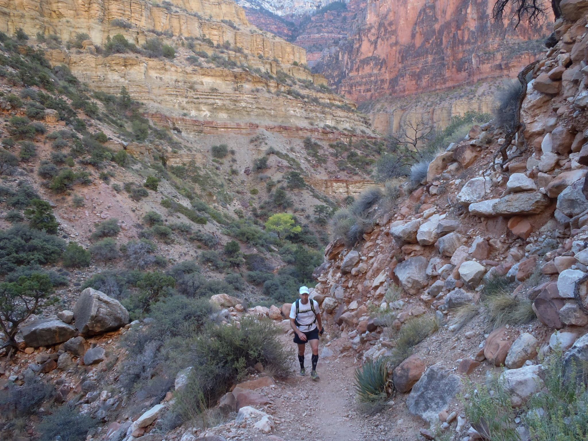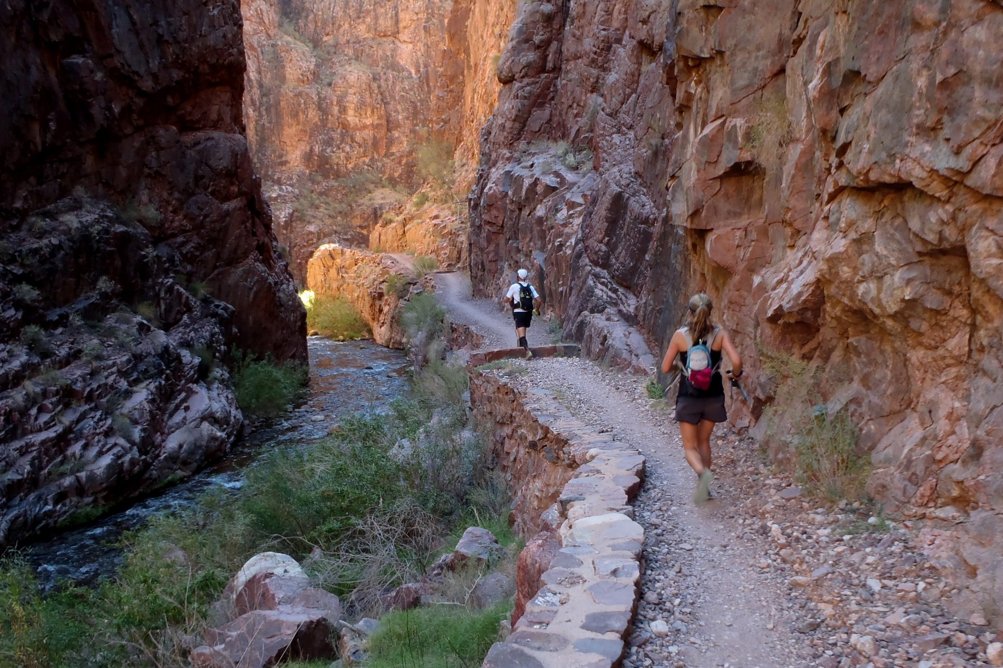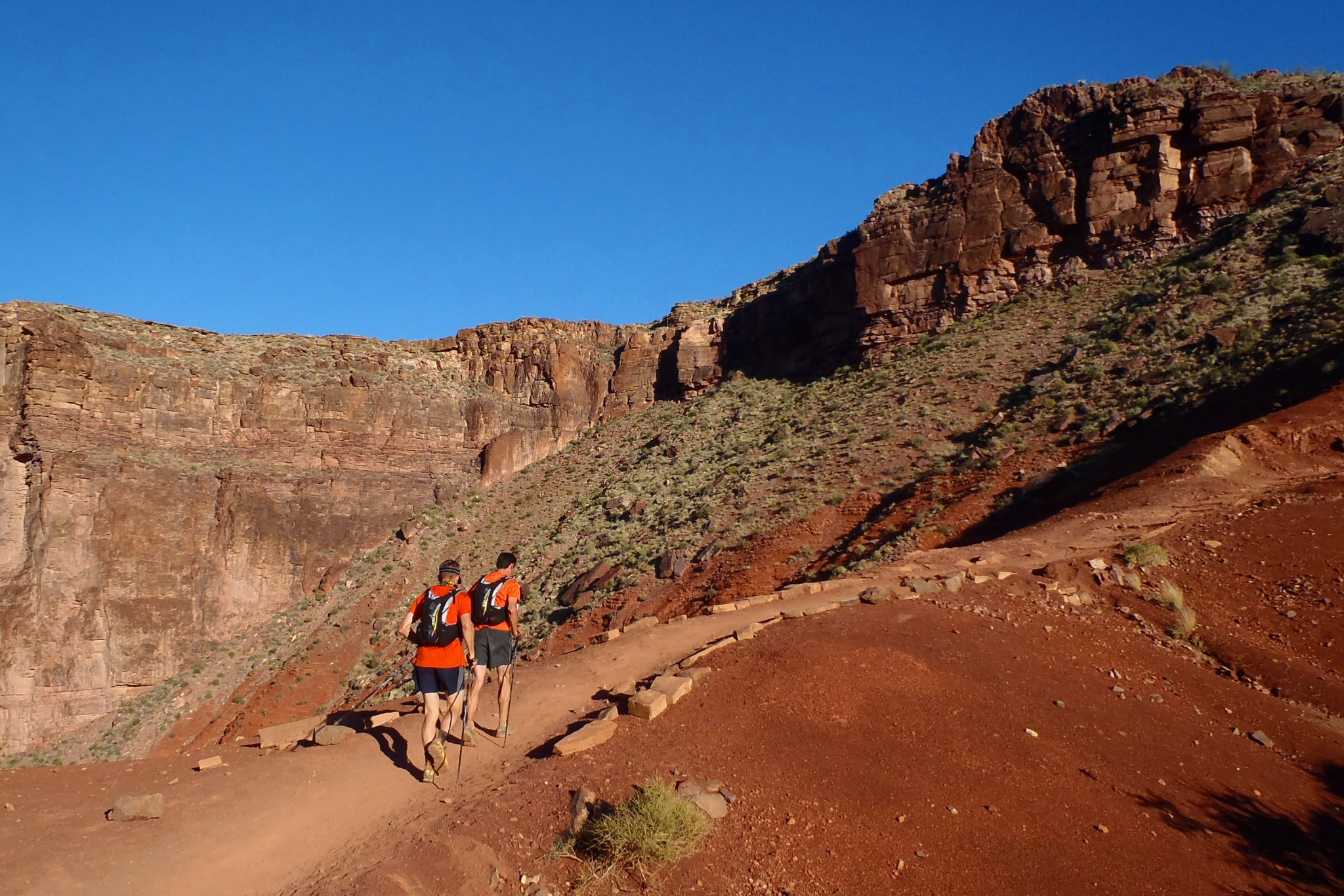 After descending the South Kaibab Trail, we crossed the Colorado River (at sunrise) and continued along the canyon bottom towards the North Kaibab Trail.