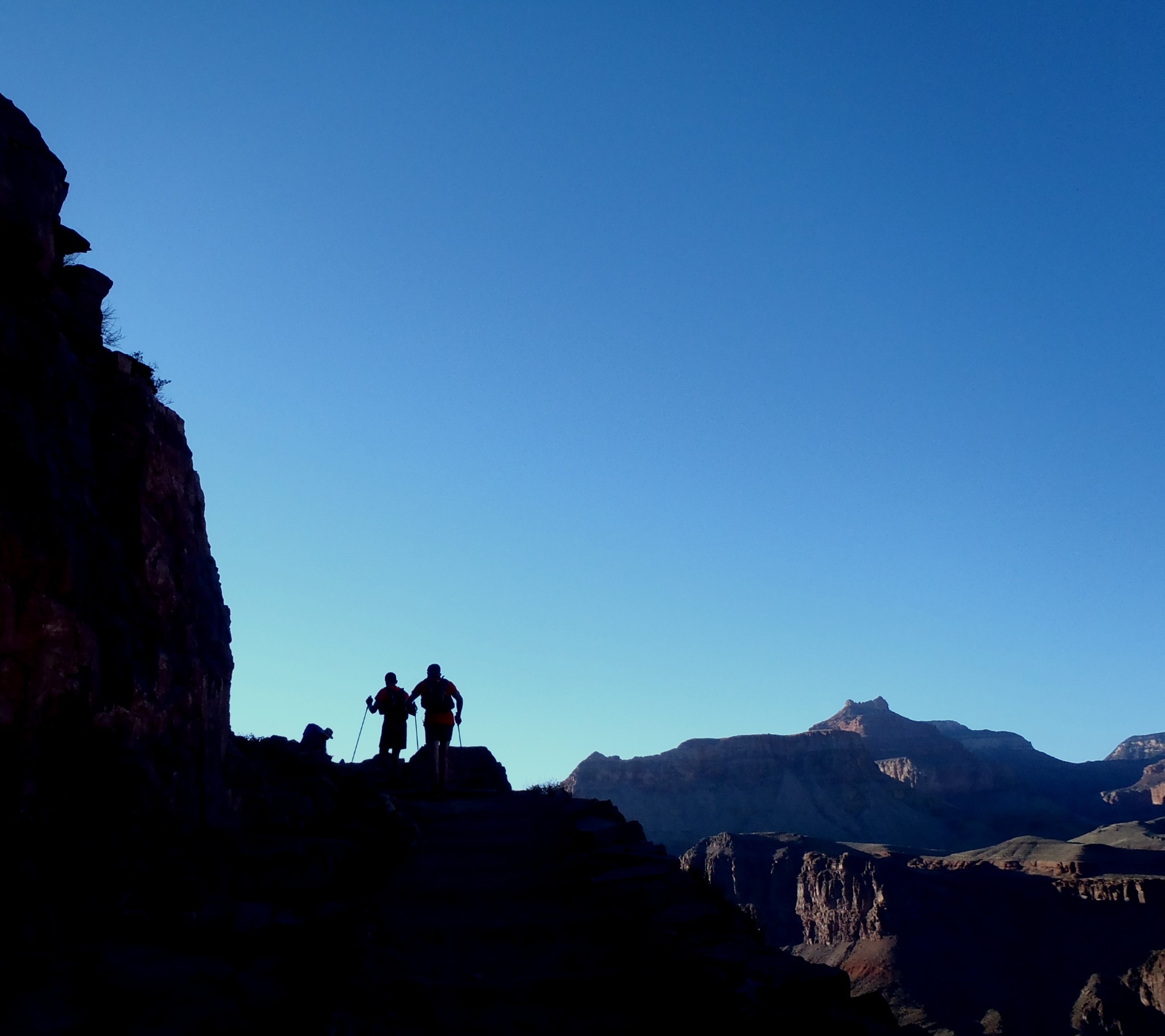 After a super early coffee/breakfast at the hotel, we drove the 20 minutes or so to the South Kaibab Trailhead. Our route would take us down the South Kaibab, across the valley floor, up the North Kaibab, and return the same way, with adding on the Ribbon Falls Trail.