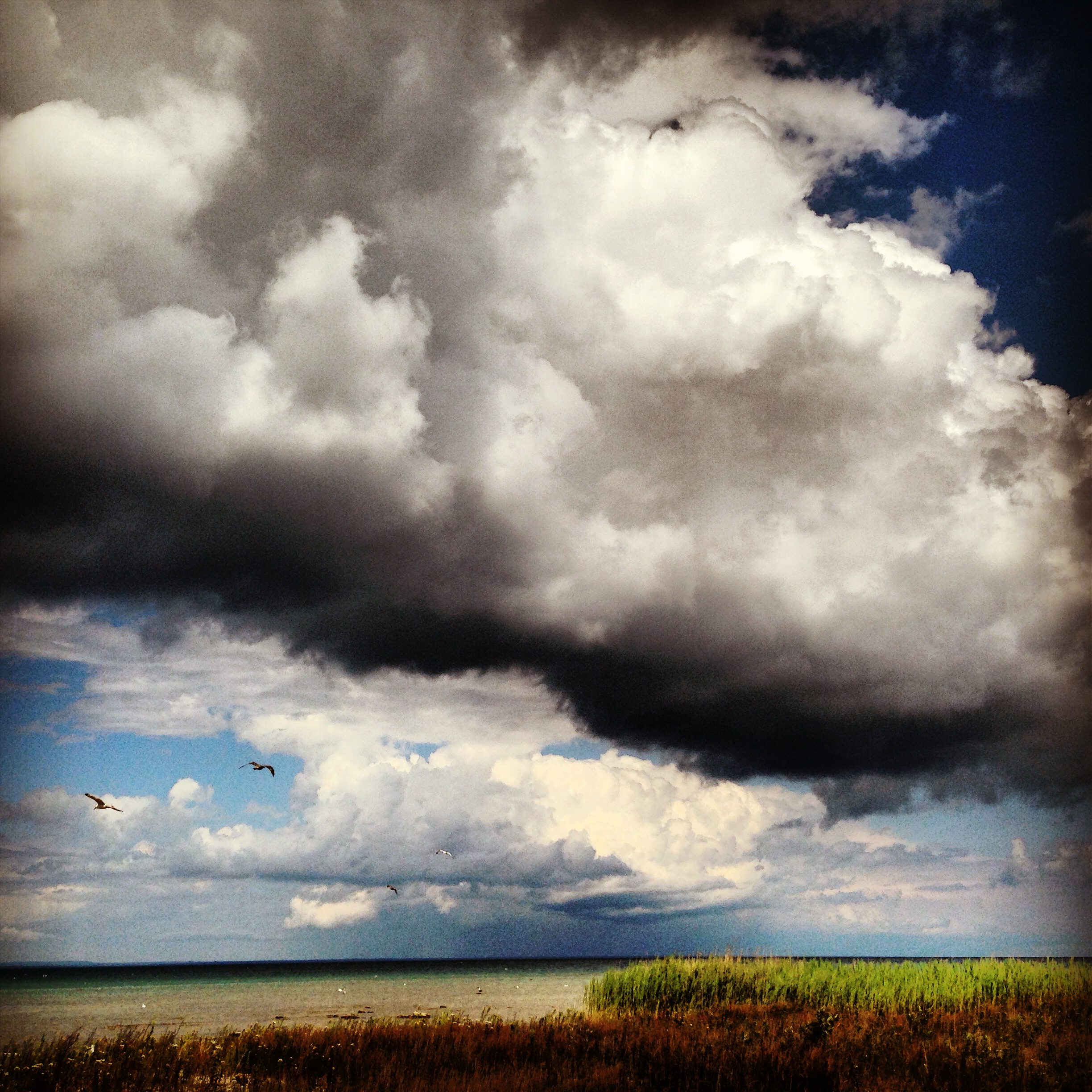 During our ferry ride from St. Ignas to Mackinac Island, we tried to ignore the thunderclouds that were forming.