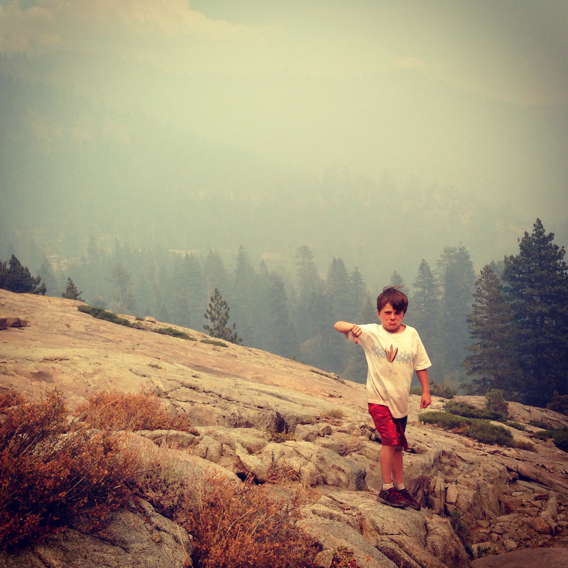 They were all about it, and we made it down in about ¼ the time it took to get up to that lake.This was fortunate as I was officially out of water by the time we got about ¾ down (great planning Mom). It turns out the smoke was from an existing fire, and Granite Chief Wilderness was NOT on fire, as I had been thinking on the run down.