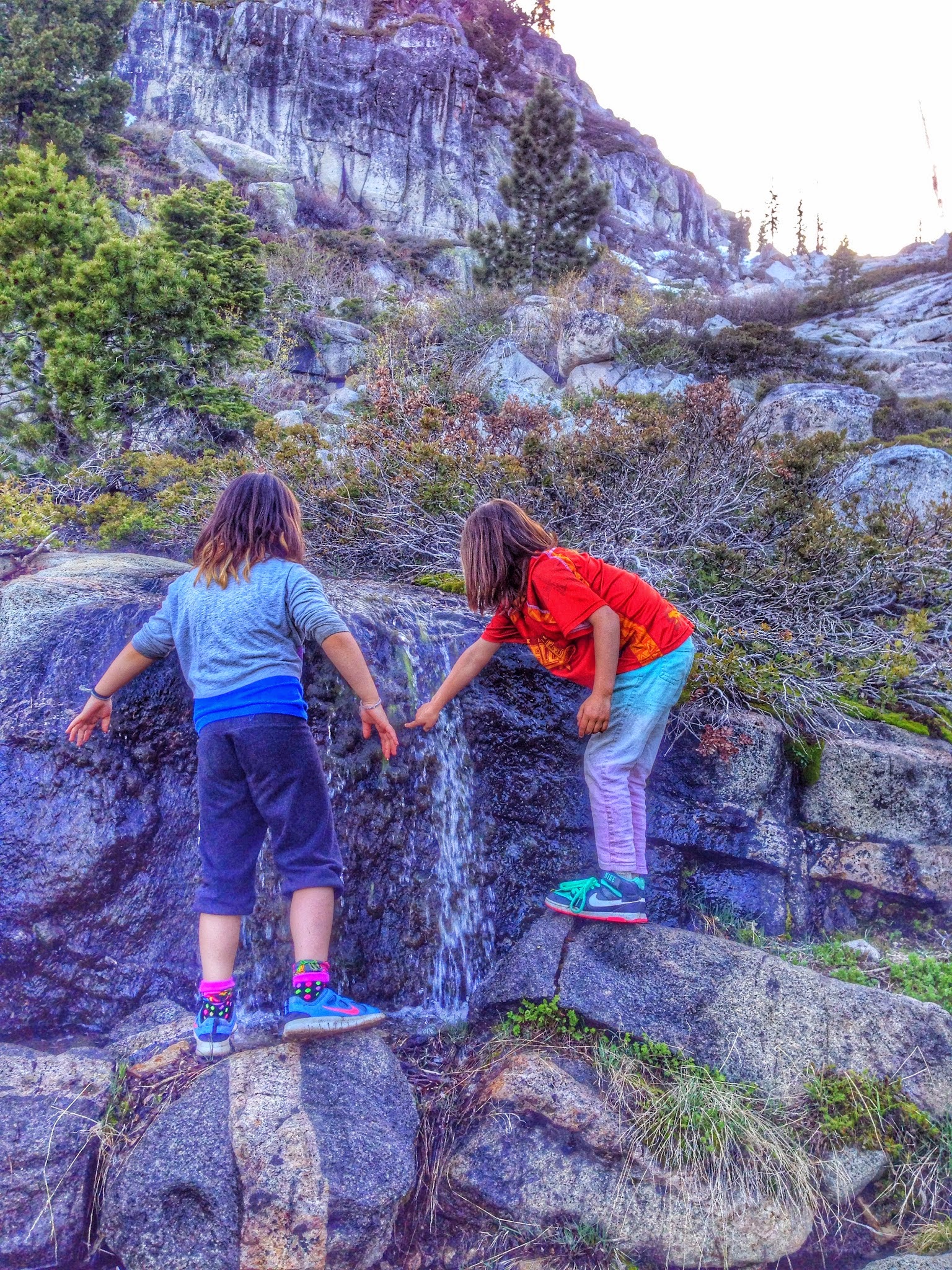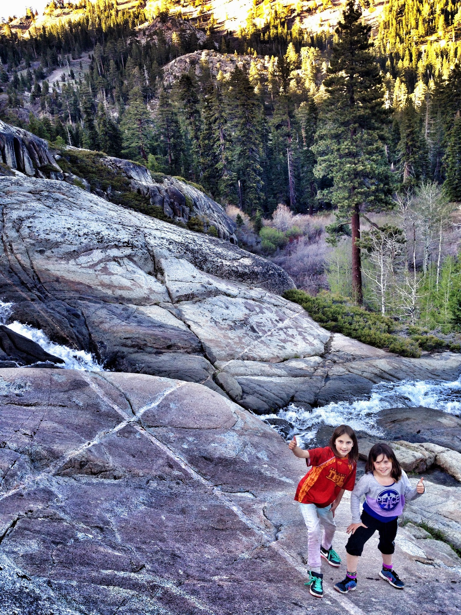 As the days were becoming longer and trails were opening up, the kids and I started going for hikes after school was out. This particular hike is in Shirley Canyon, in Squaw Valley, very close to Stephen and Avian’s school. I took Avian and her friend Amber. We covered about 3.5 miles, an out and back (or up and down rather), with many breaks to check out the creek and waterfalls.