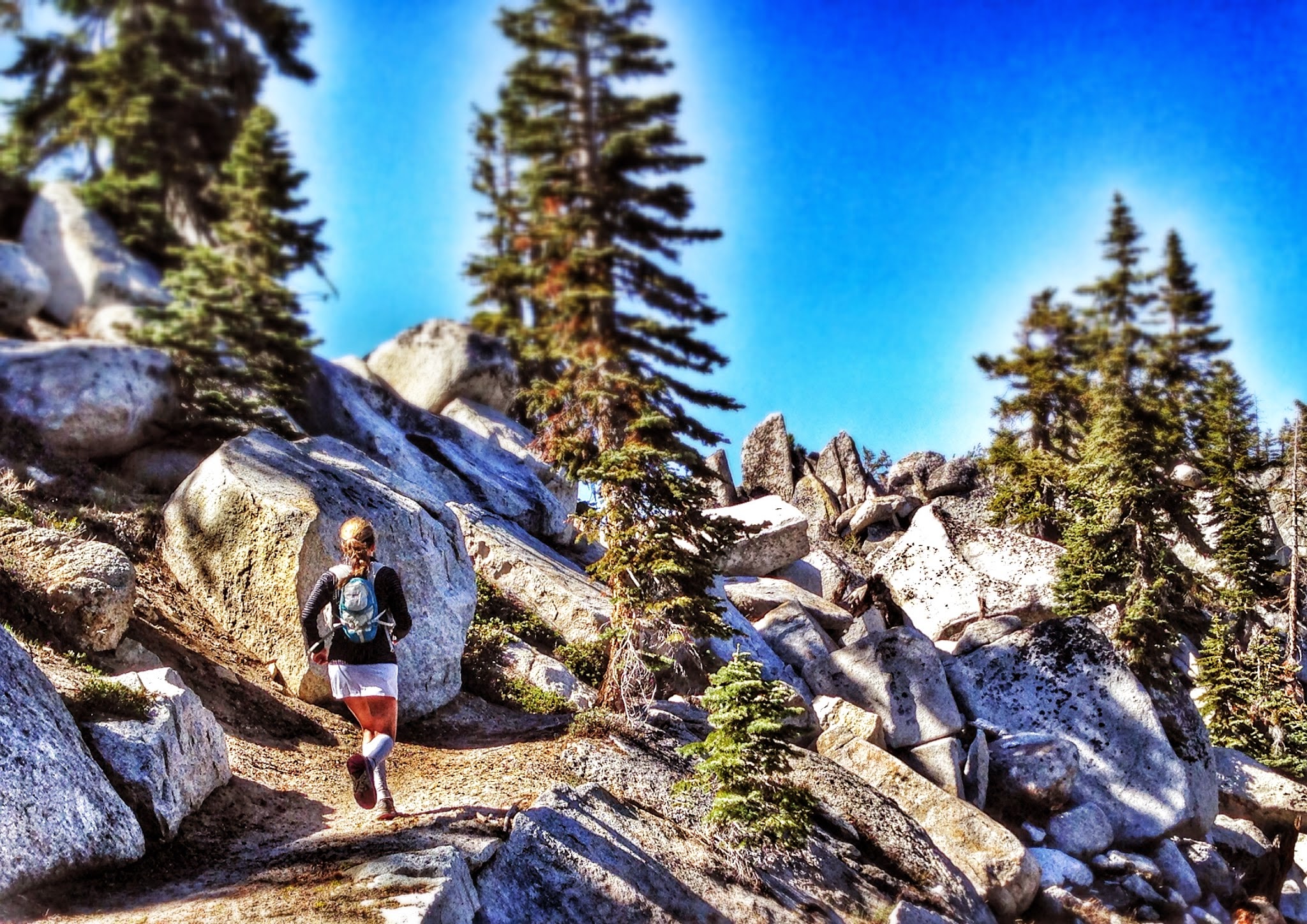 As of May 18, there was still a bit of snow behind Diamond Peak, and heading south towards Hobart from Tunnel Creek, so JP and I just did the climb up Diamond Peak over to Tunnel, the Red House Loop, and then came back down. 18.6 miles with 4,151′ climbing