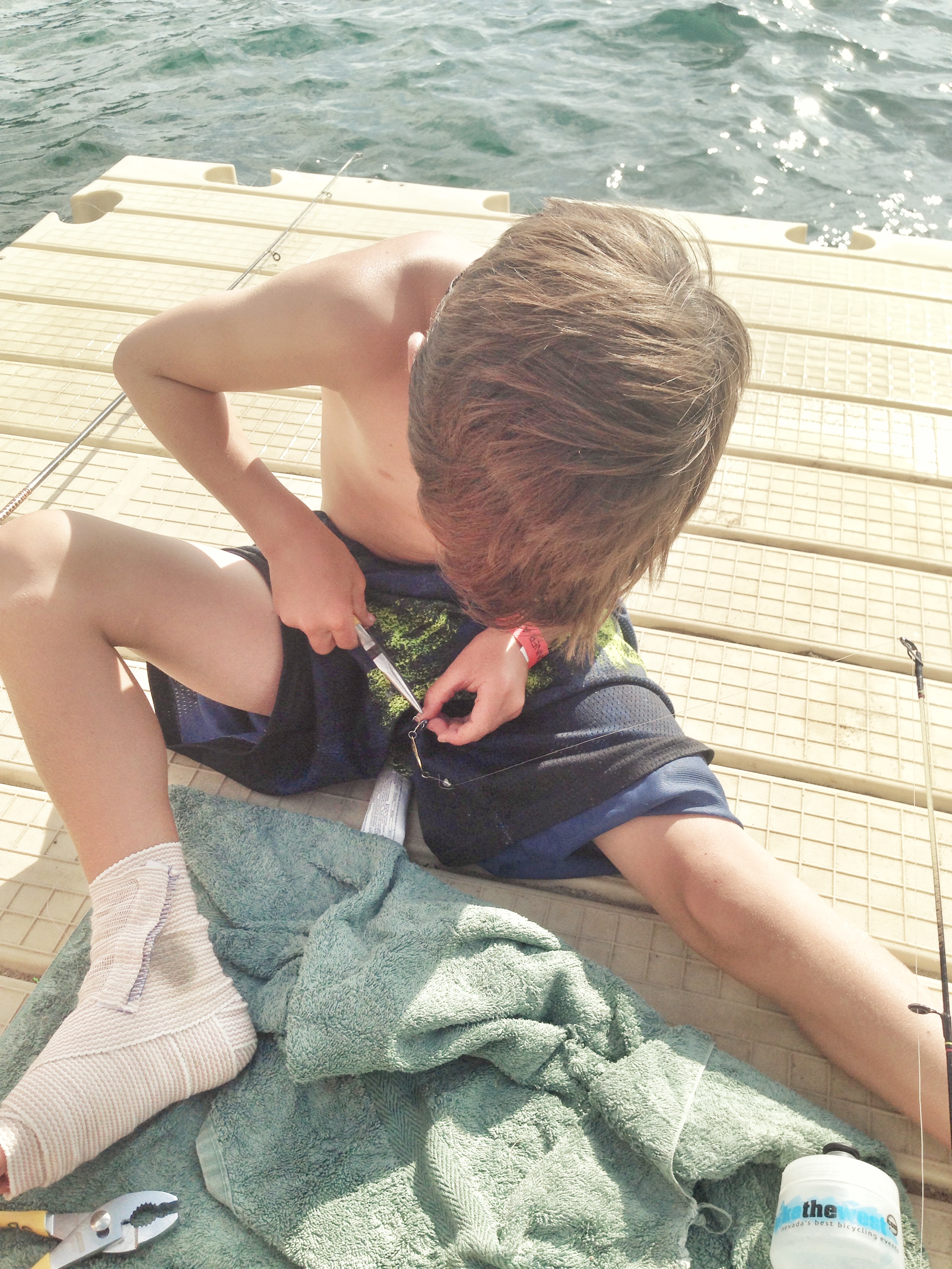 On Tuesday, I got Stephen in to see my podiatrist as his foot was looking worse. The good news is, the doctor was able to clean out the infection, the bad news is, it is MRSA and he is on crutches for 3-4 weeks with no swimming.