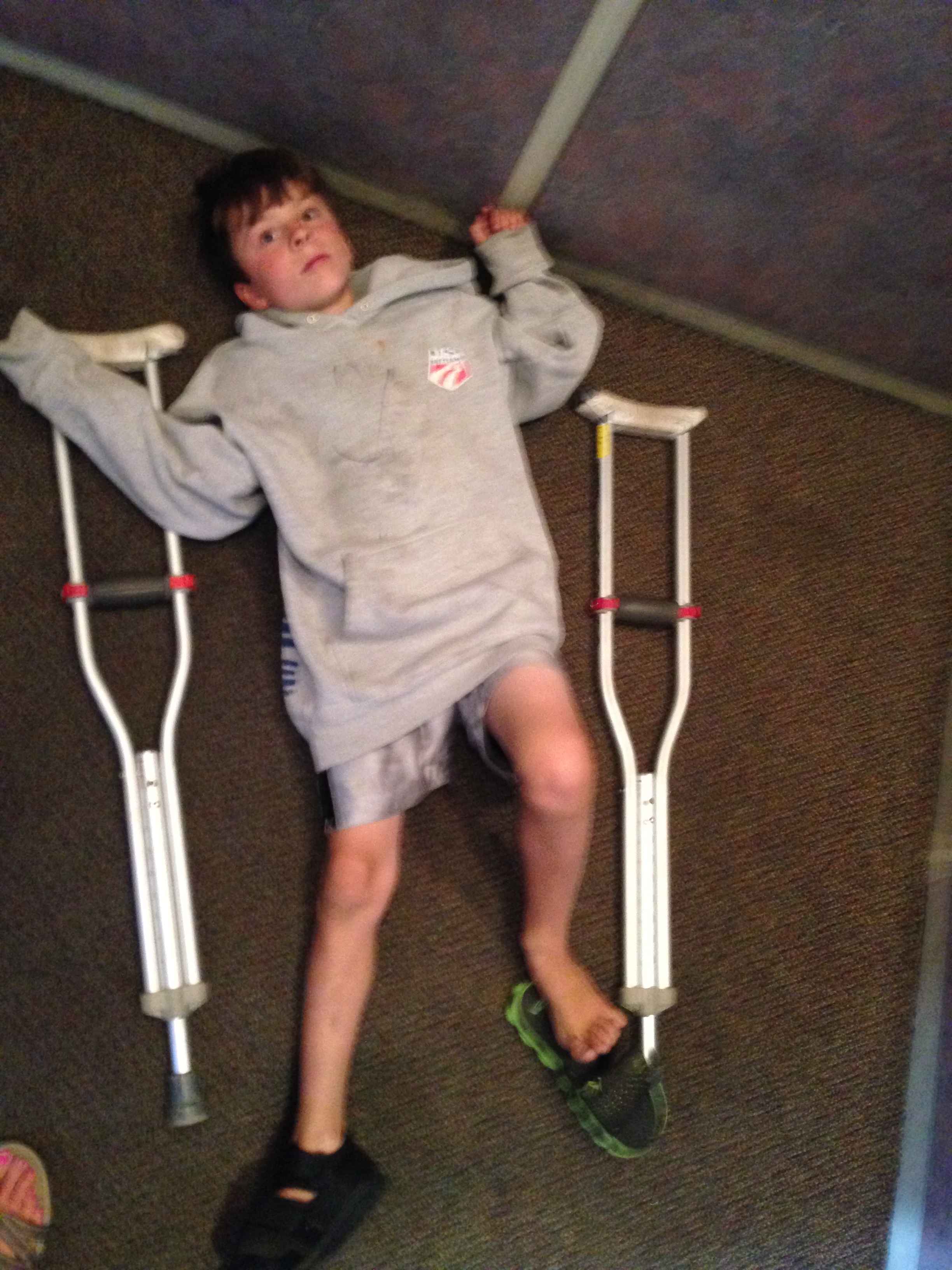Fortunately Stephen is a trooper and learned to use the crutches quickly.
