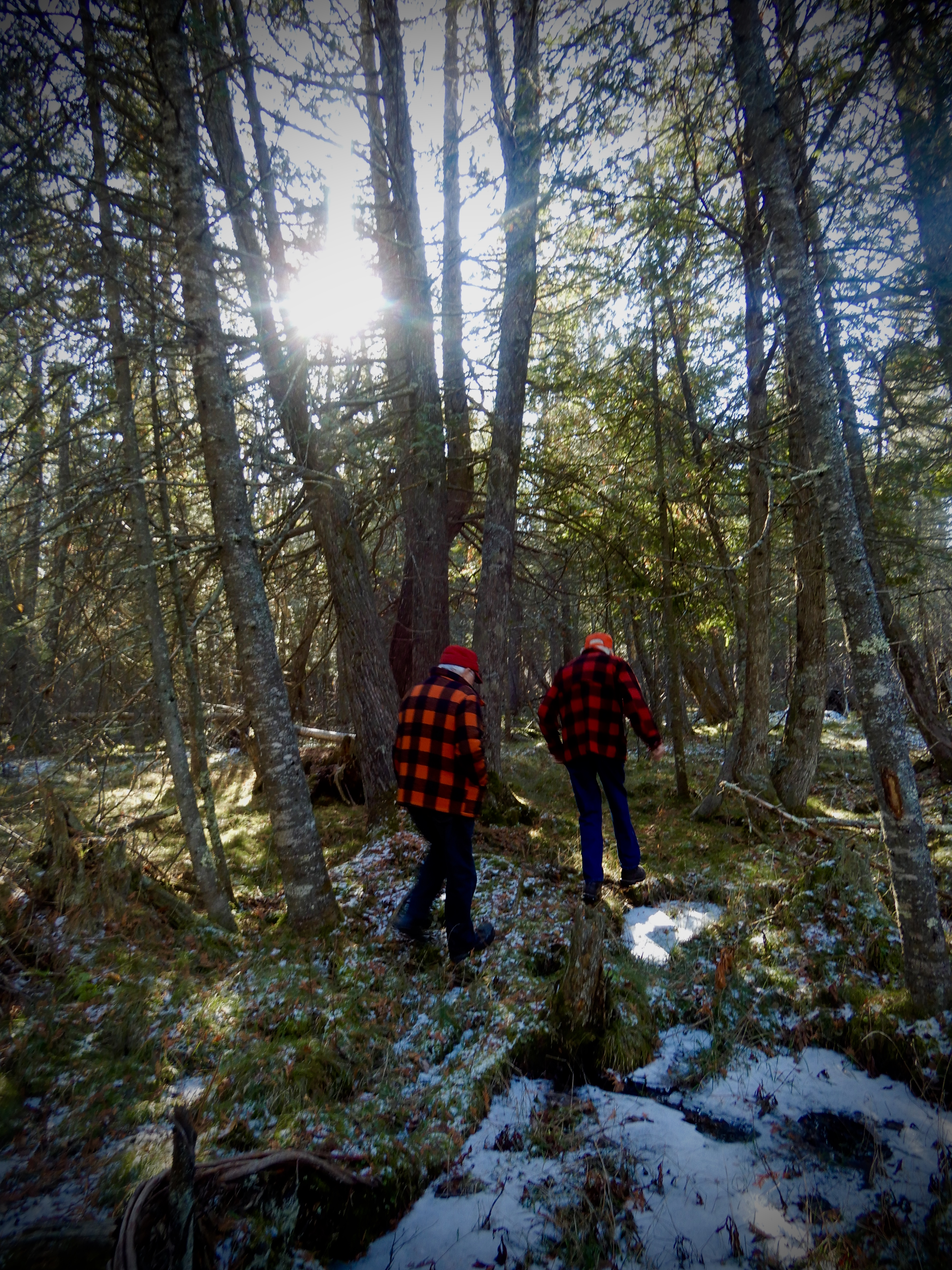 Uncle George and my dad in the cedar swamp