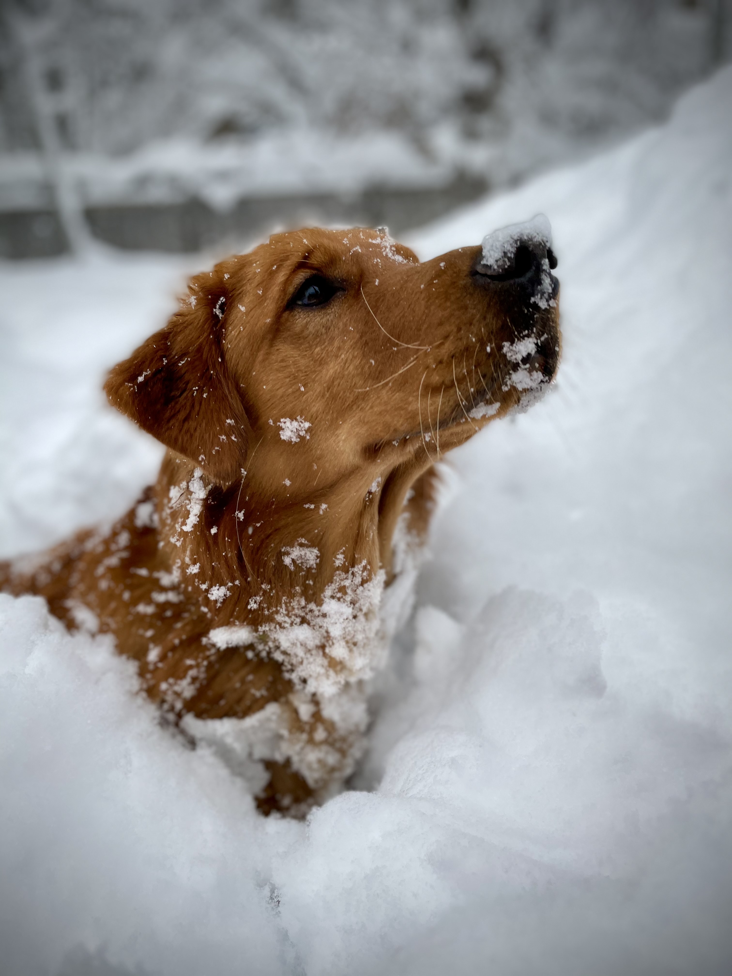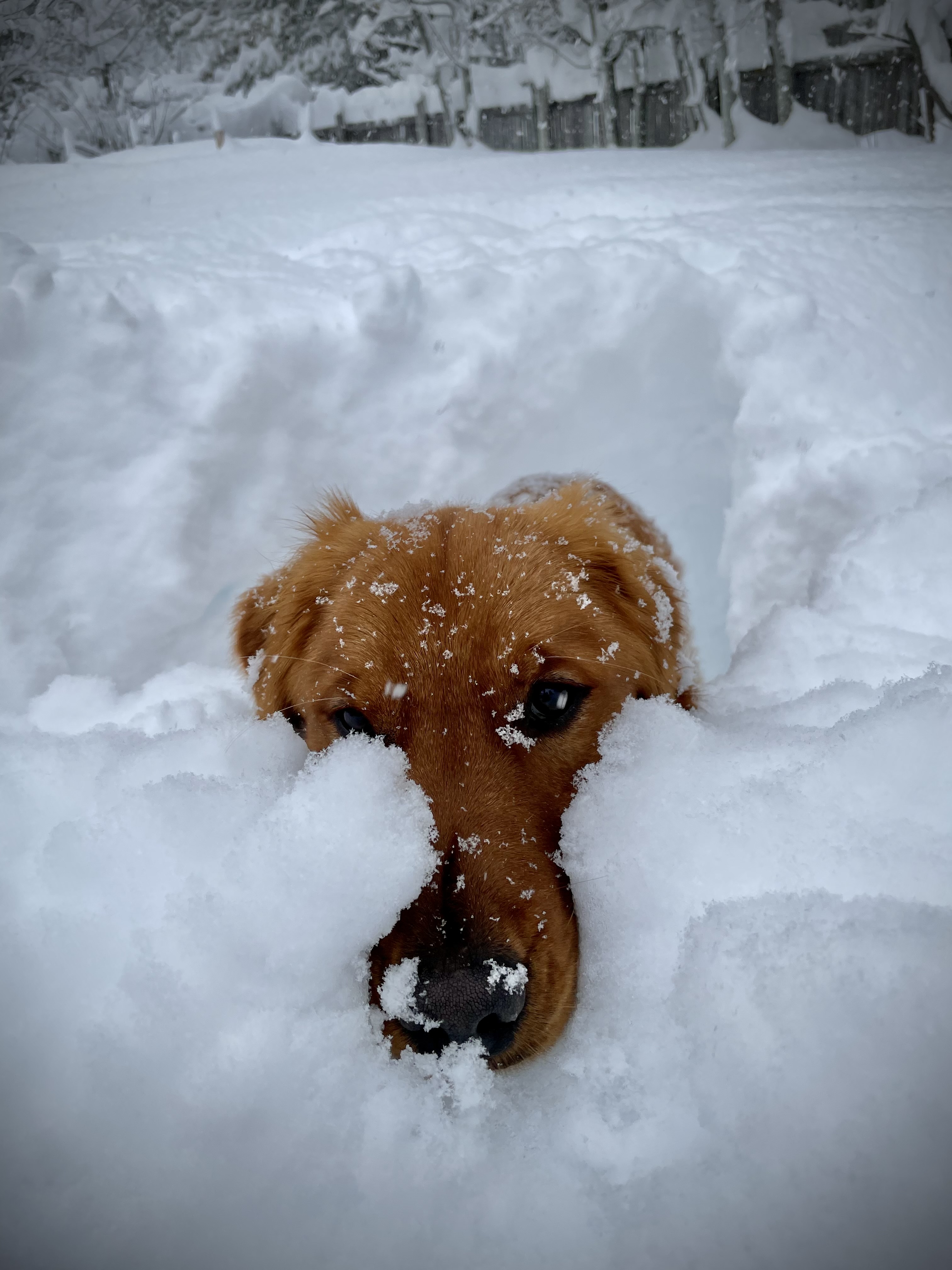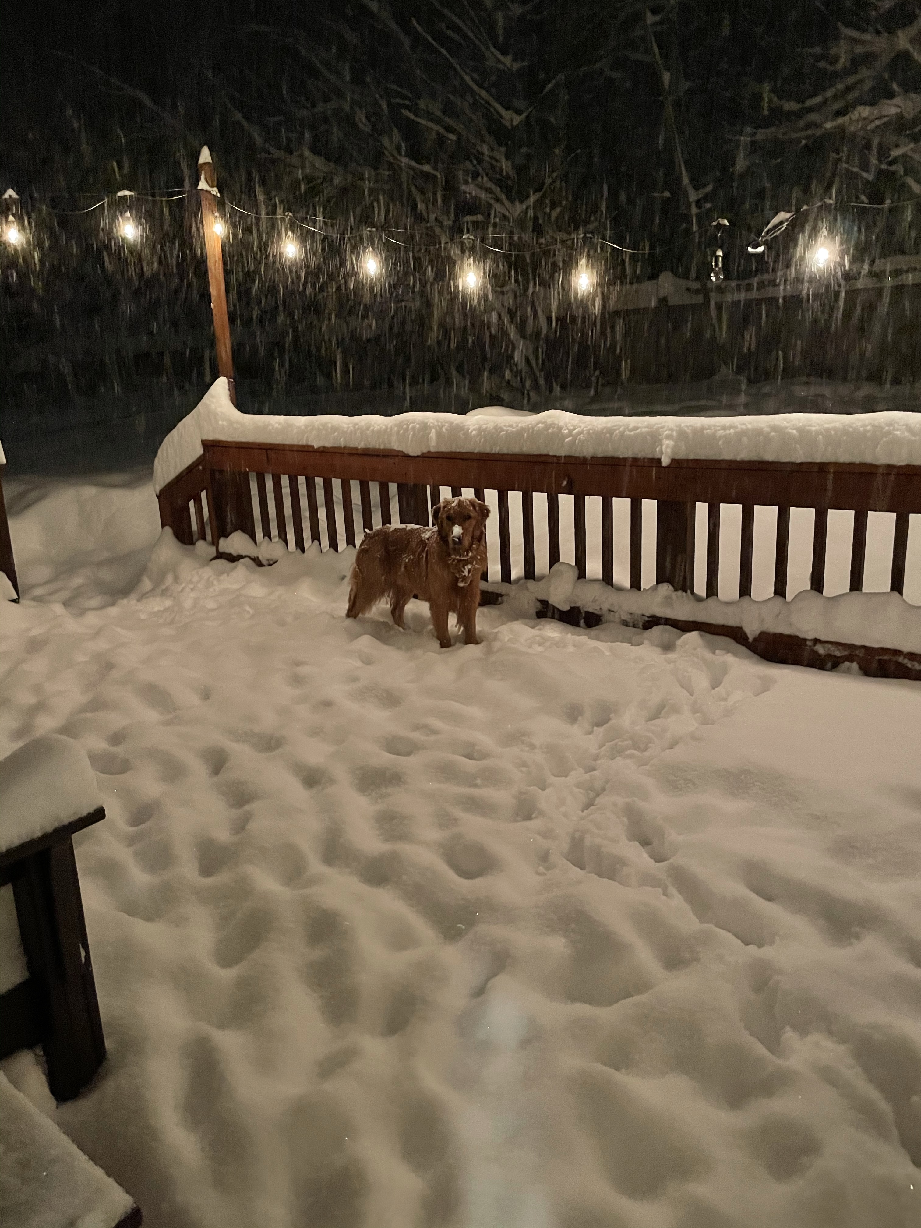 We woke up Thursday morning, January 28, 2021, to find that the snow was too deep for our dogs to make it out into the backyard.