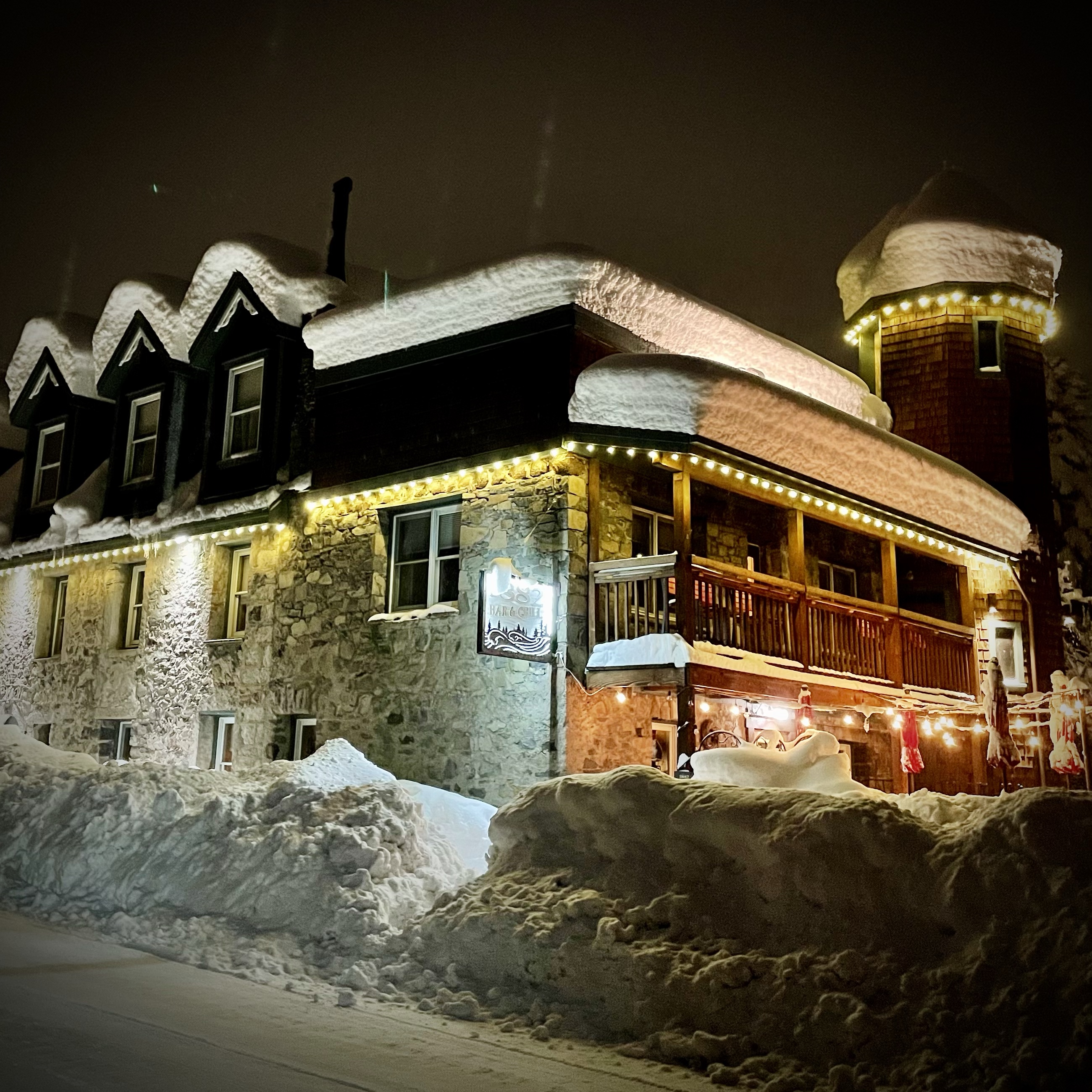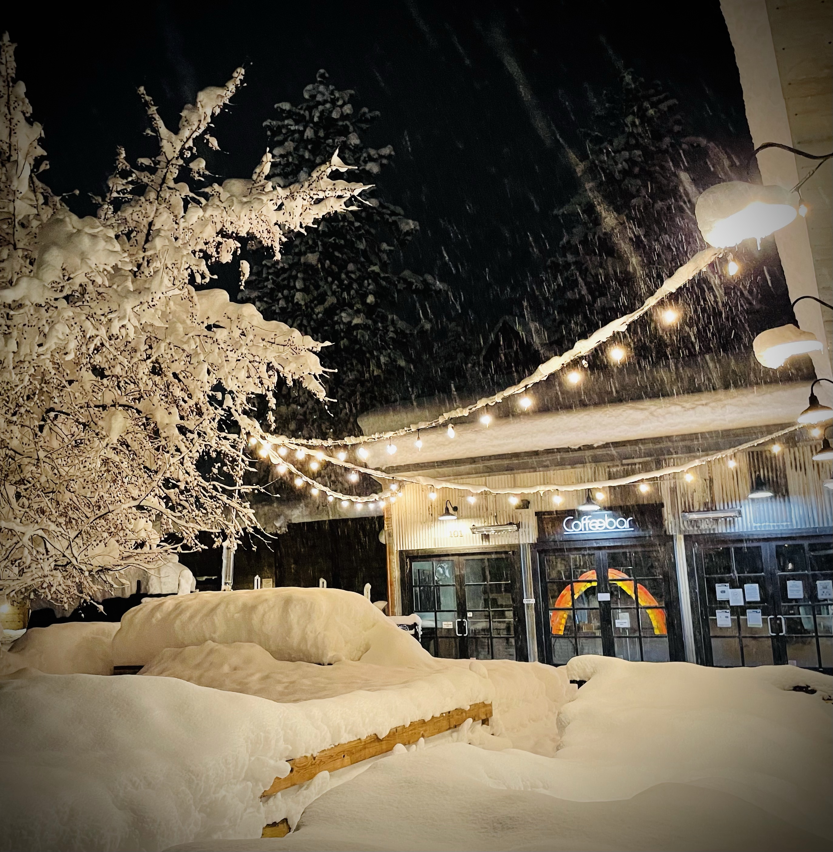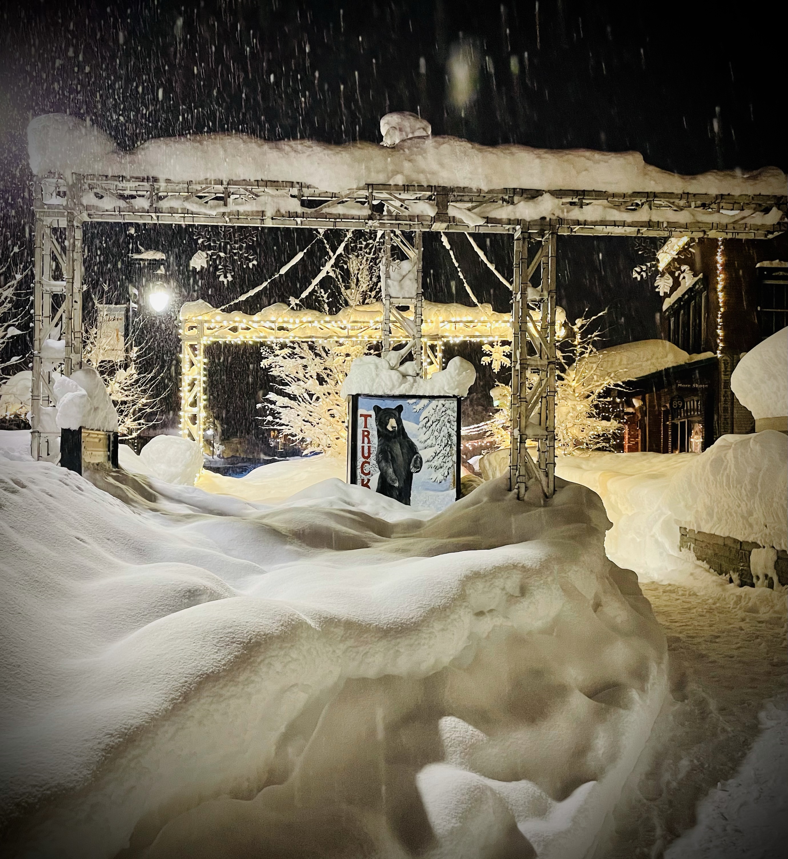 a very snowy Truckee Hotel and Moody’s sidewalk