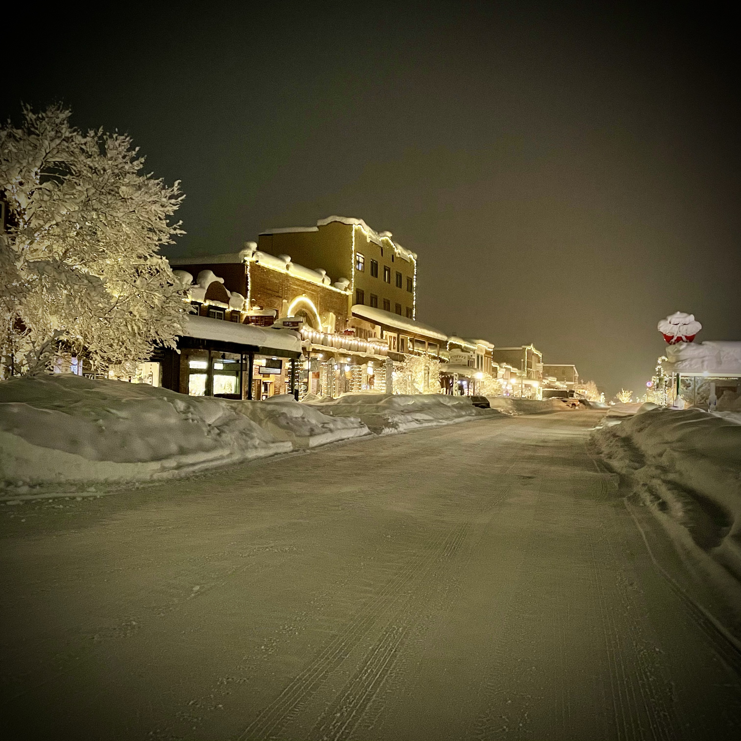 Looking back on an empty Commercial Row in downtown Truckee. Perfect conditions for a run.