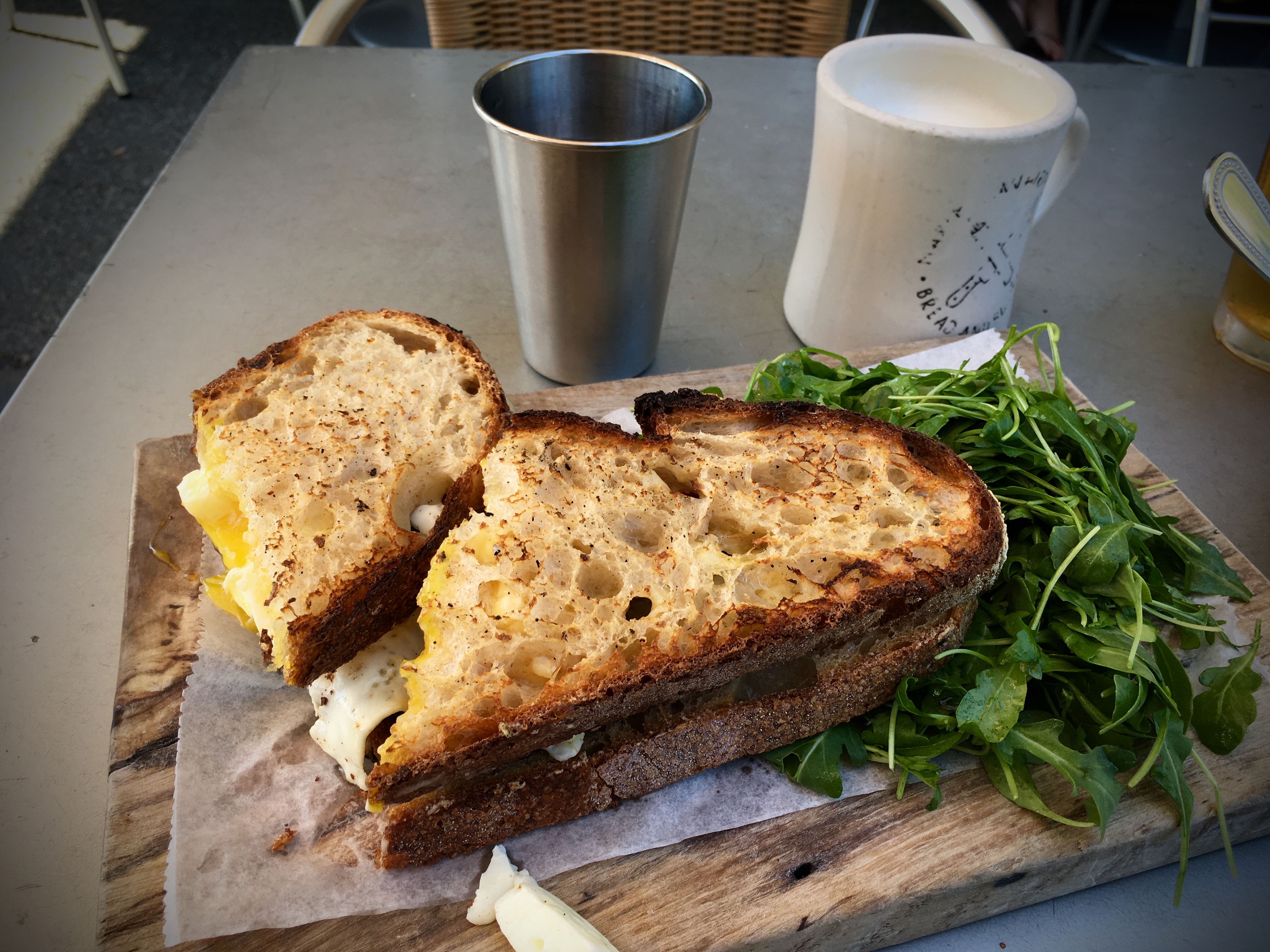 the most amazing egg-bacon-avocado-cheese sandwich + arugula